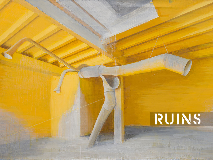 The project comprises six parts: Traces, Wall of Fame, Ruins, Museum, Sand and Cinema Hall. The latter features three films about the history of the industrial zone. These films combine panoramic aerial footage shot from a drone with personal accounts from the artist’s relatives who once worked at the plants—merging a bird’s-eye perspective with intimate microhistory.